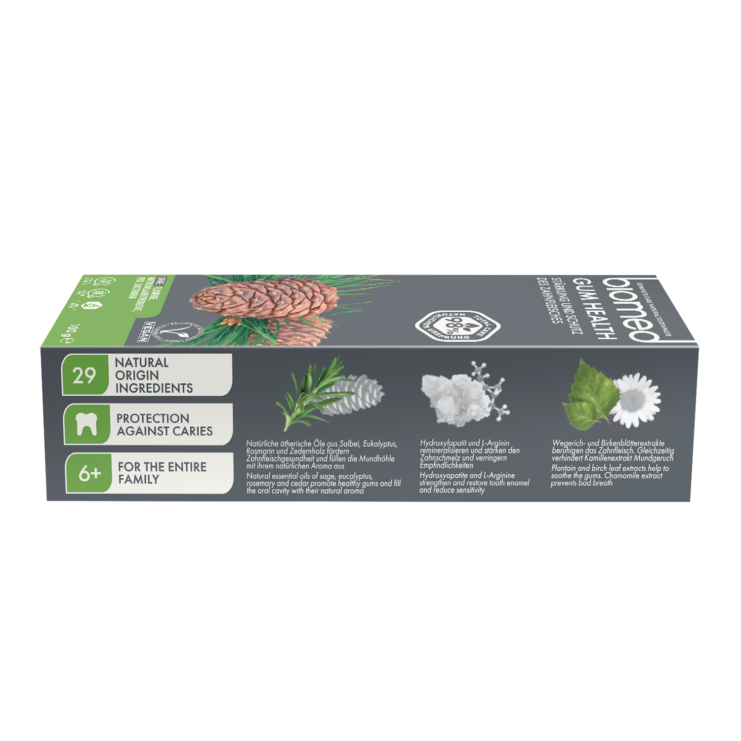 Los extractos de plantas proporcionan a la pasta de dientes Biomed® GUM HEALTH su sabor refrescante y mantienen sanas las encías y fresco el aliento. ¡Sumérgete en total armonía con la naturaleza! – 30 segundos para limpiar los dientes; – 12 horas de efecto de limpieza; – 98% Natural; – 18 ingredientes naturales clave.