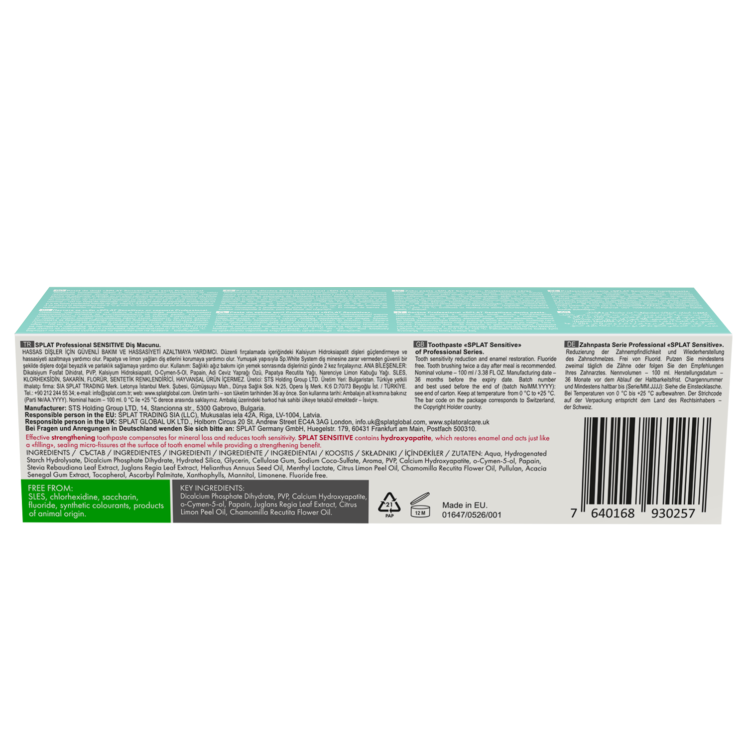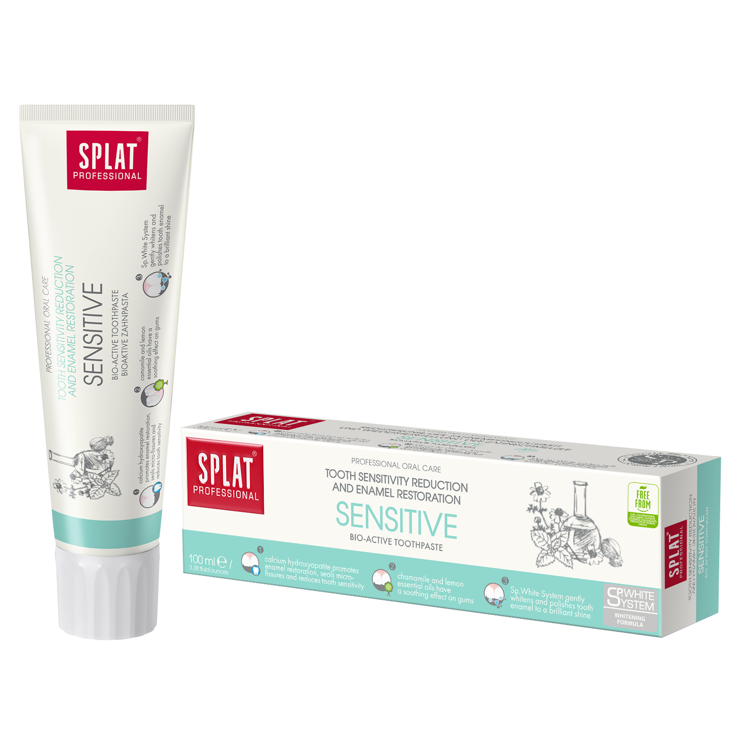 SPLAT PROFESSIONAL SENSITIVE is the effective strengthening toothpaste, that compensates for mineral loss.